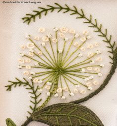 This stitch is a newcomer composite stitch, which, although it fits well with the Irish embroidery technique, is not actually found on older traditional Mountmellick work.