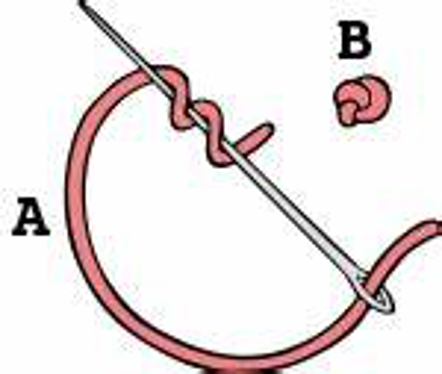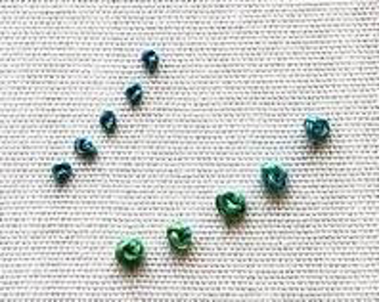 This small and simple stitch is a very versatile one which is worth mastering. It can be used as an isolated stitch, in chains, as a filling stitch when bunched en masse or to finish a chain. It is frequently found adding texture to designs, or adding emphasis as an adjunct to other stitches.